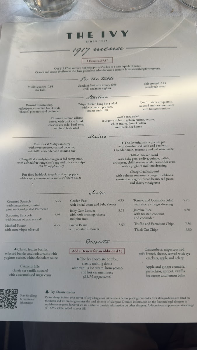 Toasted crumpet topped with cream cheese, The Ivy 1917 Cure smoked salmon and herbs